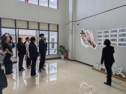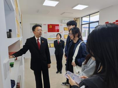 在法庭工作人员带领下,师生们依次参观知产会客厅、科技审判庭、侵权物品展示柜、李渔知产维权室等功能区。